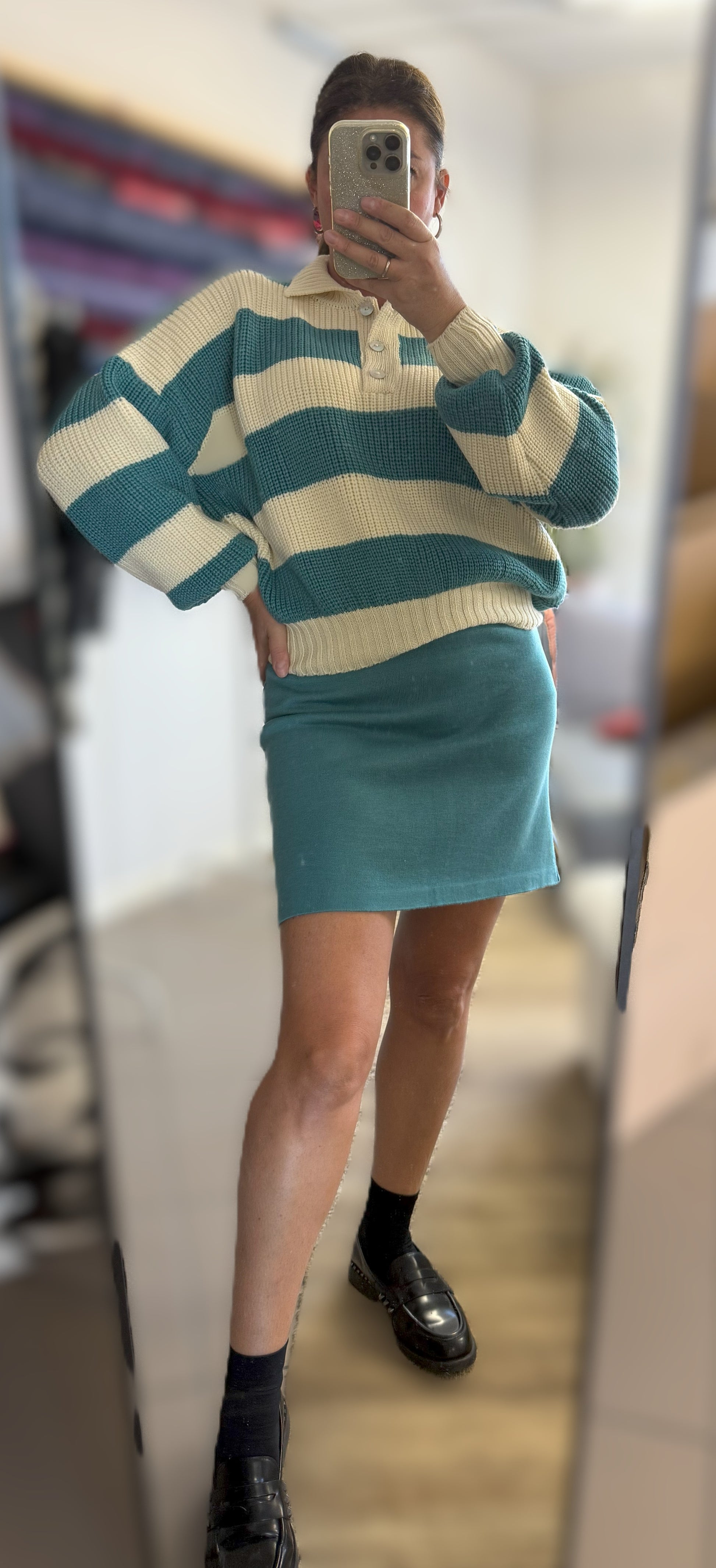 Maglione sopra Polo spalla scesa, in lana merinos a righe